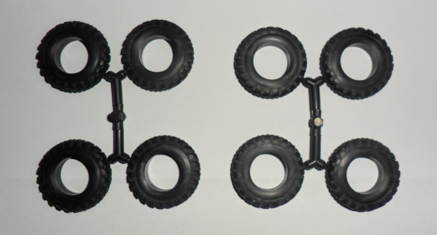 Покрышки из резиноподобного пластика с проработанным рисунком протектора.