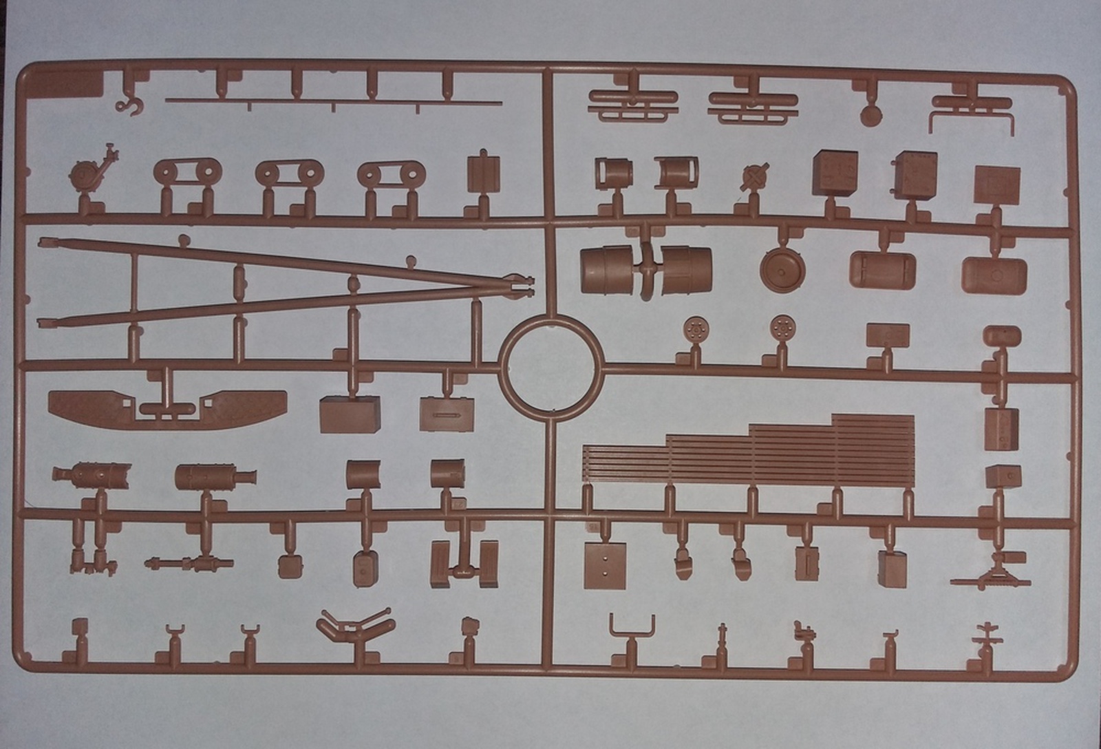 Детально проработанная сборная кабина с сиденьями, приборной панелью, элементами управления, внутренняя обшивка дверей выполнена отдельными деталями.