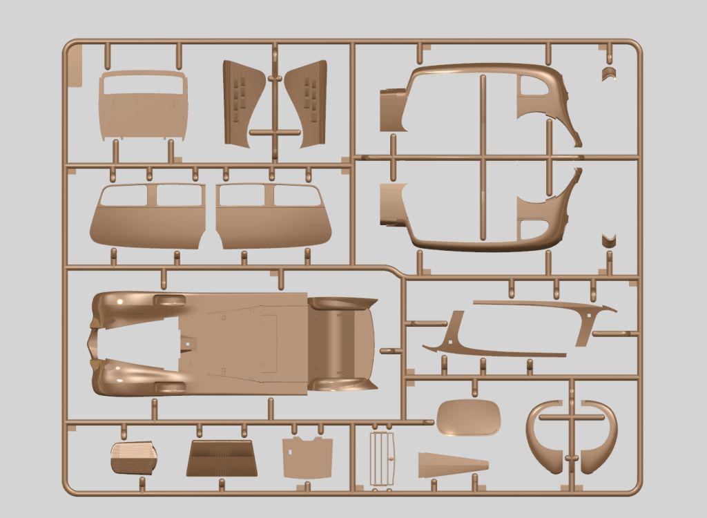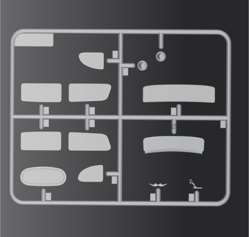 Детали из прозрачного пластика для выполненного отдельными деталями остекления салона, стёкол фар.