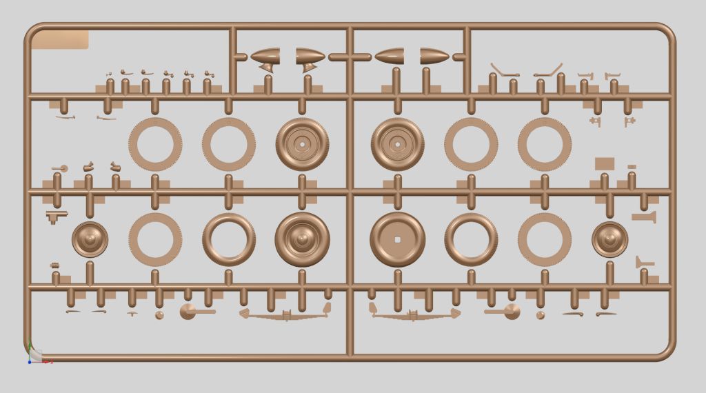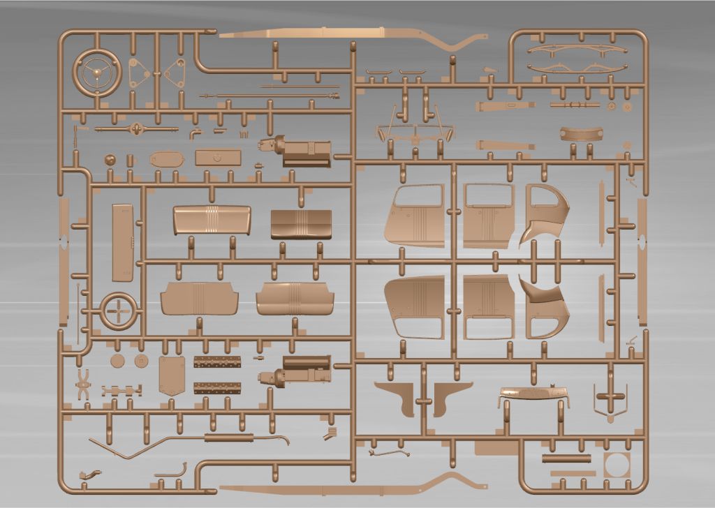 Детализированная подвеска, сборная несущая рама, проработанные трансмиссия, задний мост, кардан, рычаги, амортизаторы, выхлоп выполнен отдельными деталями.