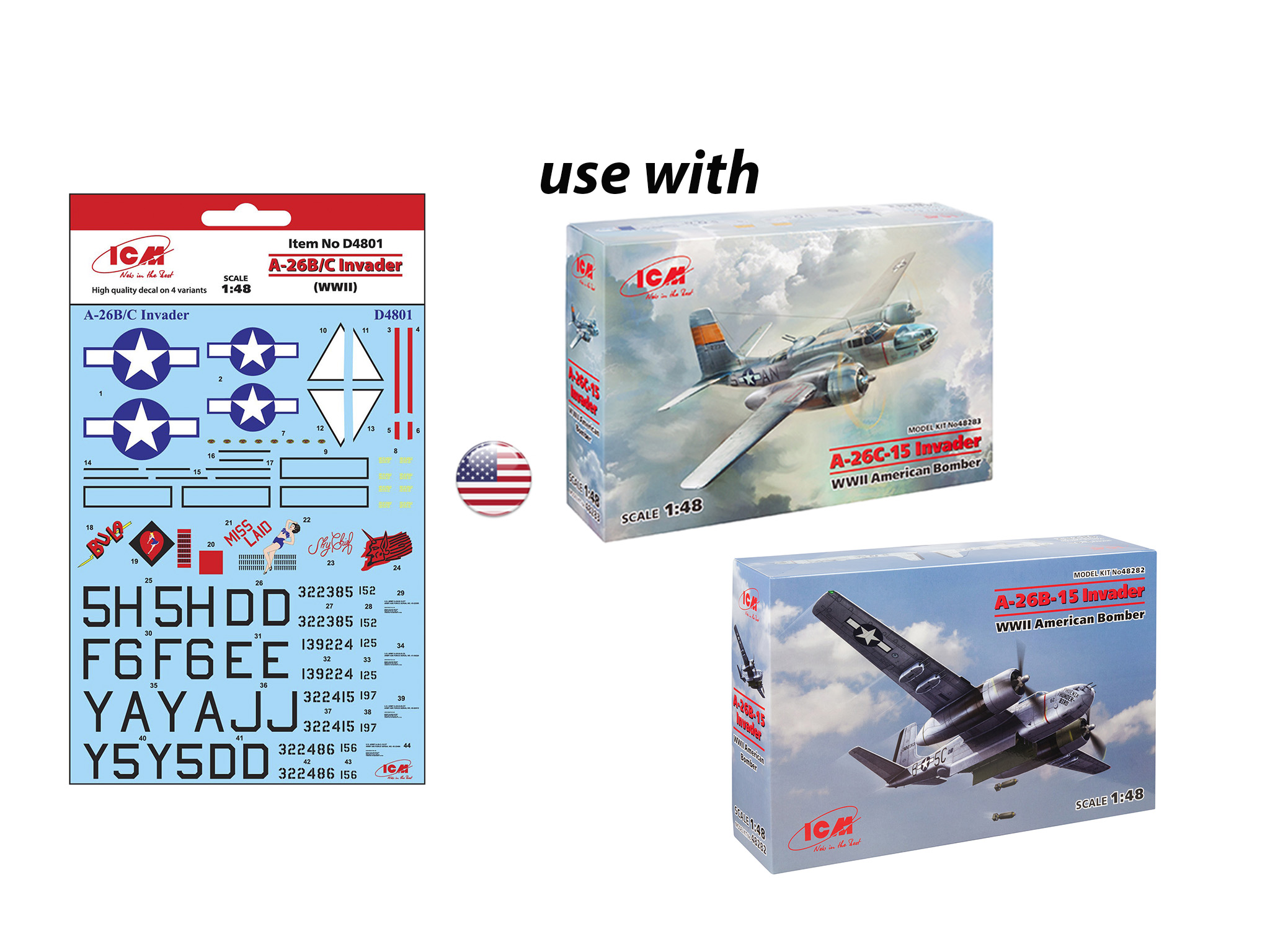 D4801 Декаль A-26B/C Инвайдер (II MB) ICM в Тюмени, купить в интернет-магазине, цены, фото