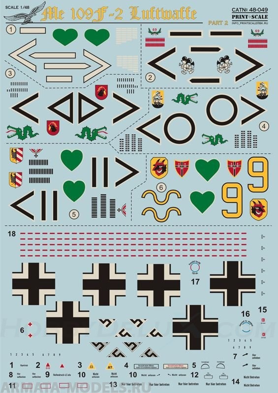 PS48-049 Декаль для Me 109 F2 Part 2 Print Scale в Тюмени, купить в интернет-магазине, цены, фото