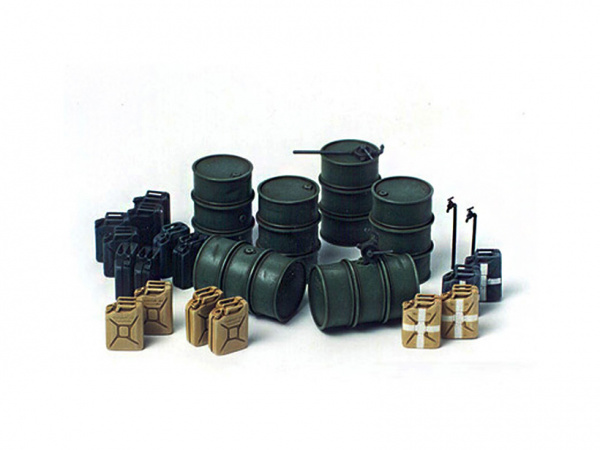 Сборная модель из пластика. Комплект немецких бочек и канистр, для дополнительной комплектации сборных моделей, военных миниатюр и диорам.