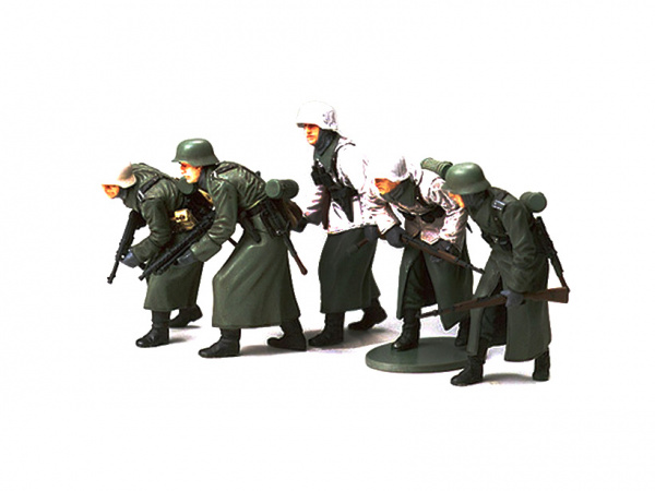 Сборная модель из пластика. 5 фигур немецких солдат в зимнем обмундировании в действии.