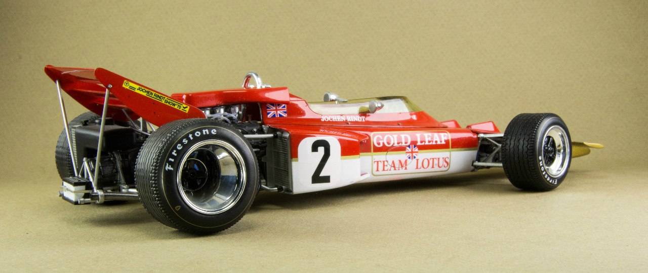 Lotus 72 - 1970г. (Великобритания). Долгожитель Формулы 1. За шесть лет выступлений он выиграл 19 Гран при. Конструкторы Colin Chapman и Maurice Philippe внедрили два важных новшества - клиновую форму кузова и боковые радиаторы охлаждения. В 1970 году, до трагической аварии в Monza, Jochen Rindt выиграл пять гонок Гран при. Он посмертно стал чемпионом мира. (текст взят с сайта http://formula1retro.ru, фотоматериалы взяты с сайта http://www.greenmats.club, автор Barabakin)
