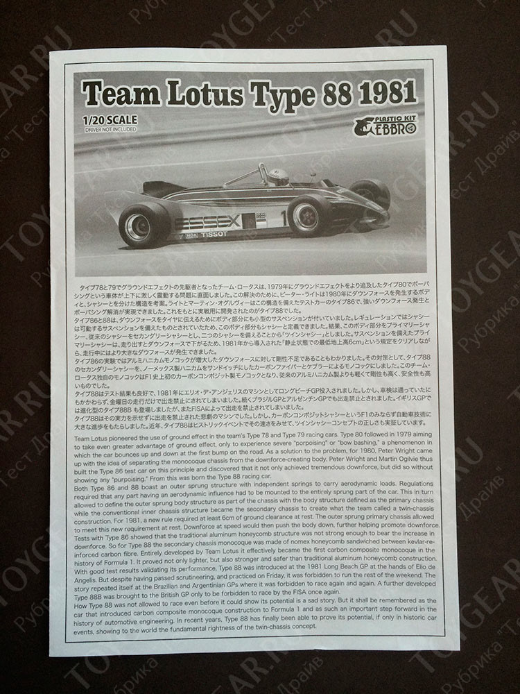 Надеясь решить все спорные вопросы в судебном порядке до следующего этапа в Бразилии и Аргентине, команда реализовала интенсивную тестовую программу на трассе в Риверсайде (США), а также выезжала на тренировках перед гонками. Но и в Бразилии, и в Аргентине приговор судейской коллегии был не изменим и однозначен, болид Lotus 88 вне гонок. Команда продолжала протестовать, поэтому не вышла на четвертую гонку в Сан-Марино, за что была оштрафована на 100 000 долларов, но штраф был позже снят. Колин Чэпмен, до последнего не желавший мириться с решением FISA, на домашнем Гран-При Великобритании выставил доработанный болид Lotus 88B (шасси R2 и R3). Оба болида успешно прошли технический контроль и были признаны легальными, но на следующий же день федерация отменила решение организаторов Гран-При и запретила допускать Lotus 88B на старт. (фотоматериалы и текст взяты с сайта http://www.toygear.ru)