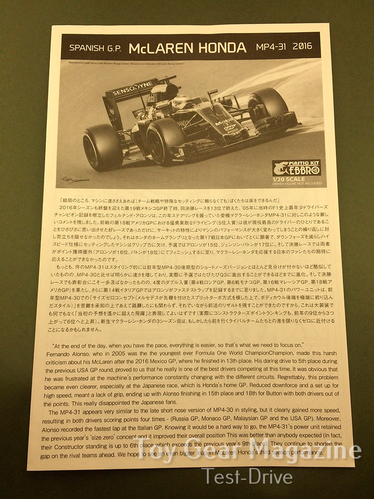 Болид McLaren MP4/31 был представлен публике через Интернет, 21 февраля 2016 года были опубликованы на сайте команды студийные фотографии и комментарии руководства и пилотов (Фернандо Алонсо №14 и Дженсон Баттон №22, резервный пилот Стоффель Вандорн №47).
