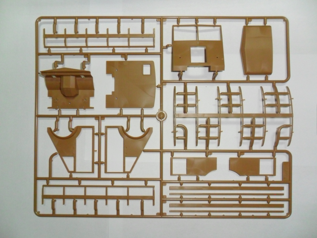 Детализированная сборная кабина с приборной панелью, элементами управления, пол выполнен отдельной деталью, двери выполнены отдельными деталями.