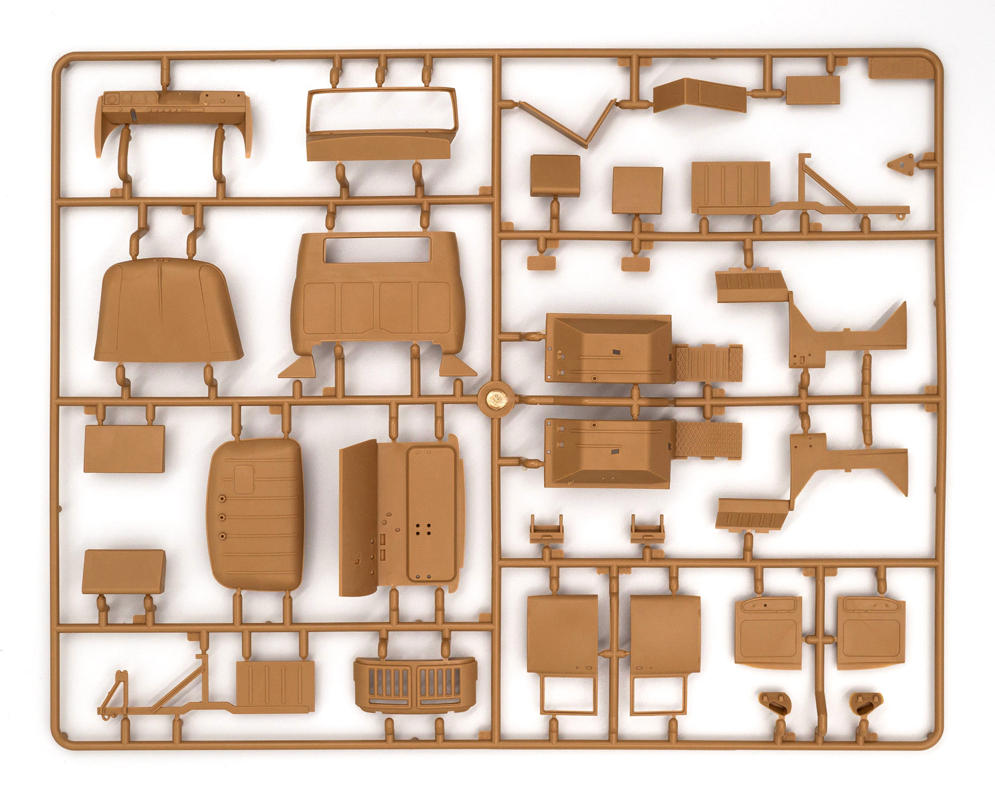 Ручки стеклоподъёмников, внутренние и внешние ручки дверей, дворники, инструментальные ящики, запаска, зеркала заднего вида, решётки защиты фар и множество других подробностей.
