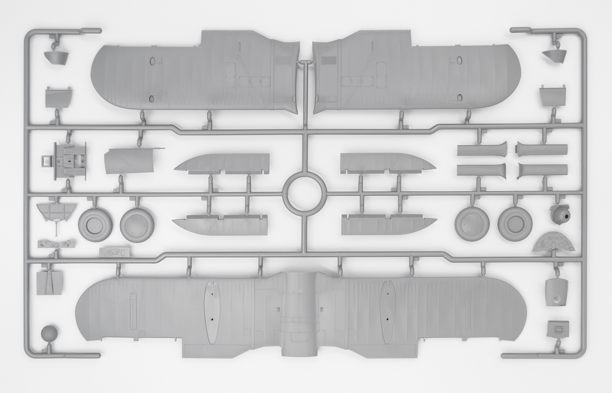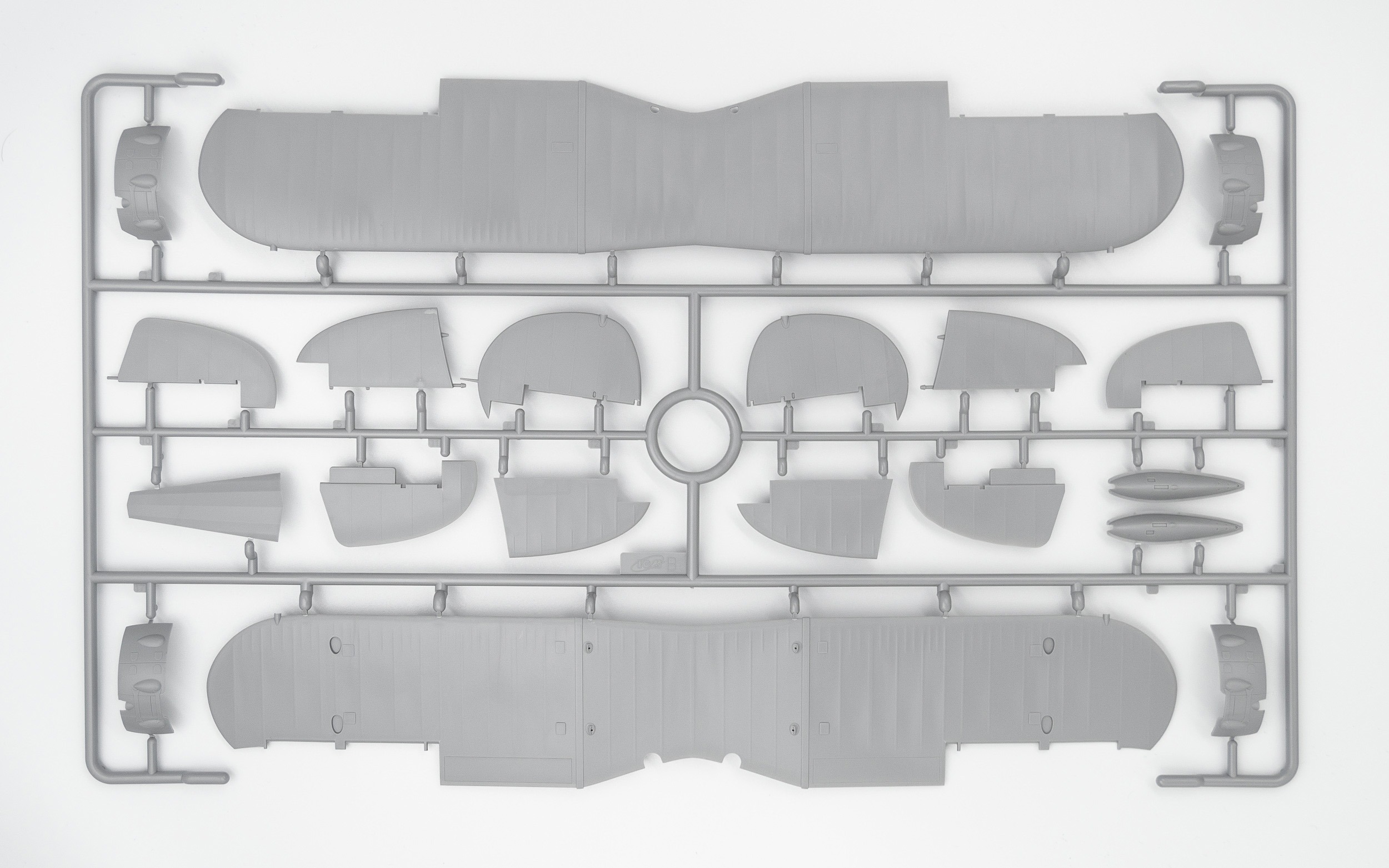 Длина модели 262 мм, размах крыльев 307 мм, 135 деталей, 4 варианта декалей. Подставка в комплект не входит.