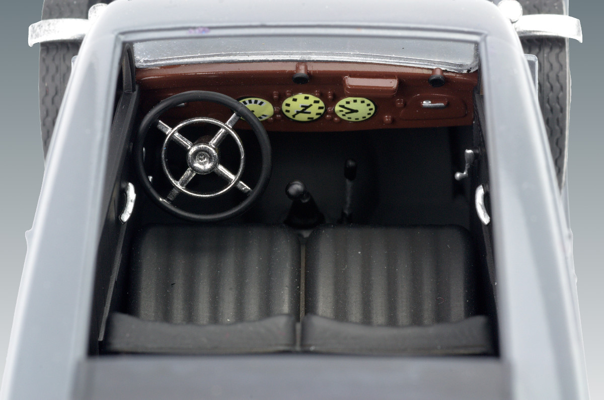 Проработанный интерьер с сборными диванами, рычагами и педалями управления, панелью приборов, внутренняя обшивка дверей выполнена отдельными деталями.