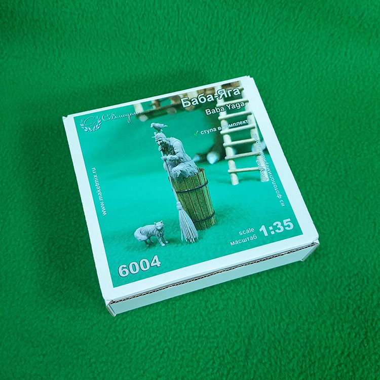 Фигурка "Баба Яга" выполнена в масштабе 1:35 как дополнение к модели "Избушка на курьих ножках". Изготовлена на 3D принтере из серой фотополимерной смолы. Высота фигурки 36 мм. В комплекте идёт метла (высота 63 мм), кошка (15 мм), ворона (6 мм) и деревянные заготовки для изготовления ступы. Качество печати фигурки очень высокое. У вороны сделаны все три пальца на лапах