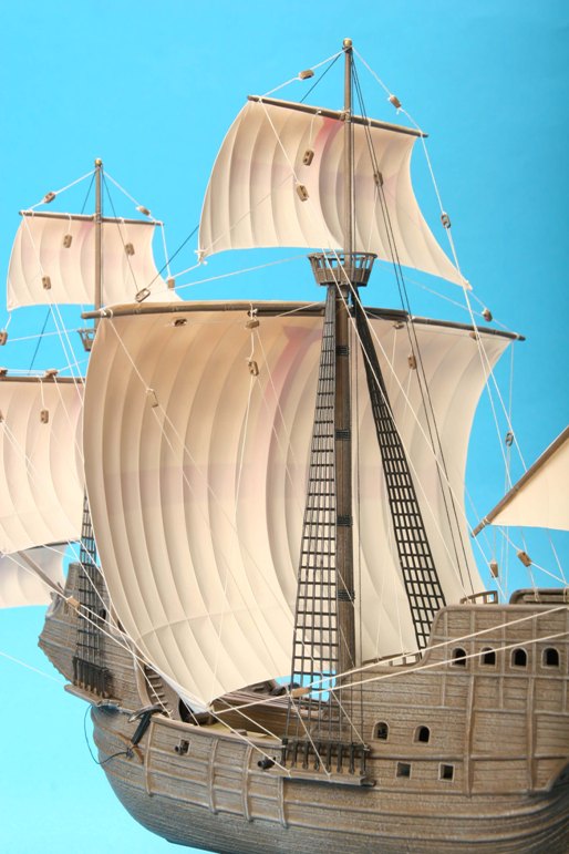 Модель корабля 16 века, на кораблях такого класса конкистадоры отправлялись покорять земли Нового Света. Корабль мог принять на борт до 900 тонн груза при водоизмещении 1600 тонн и мог перевозить 600-700 вооруженных человек. Для своего времени этот корабль был хорошо вооружен, на него устанавливалось 10 корабельных пушек и фальконетов.