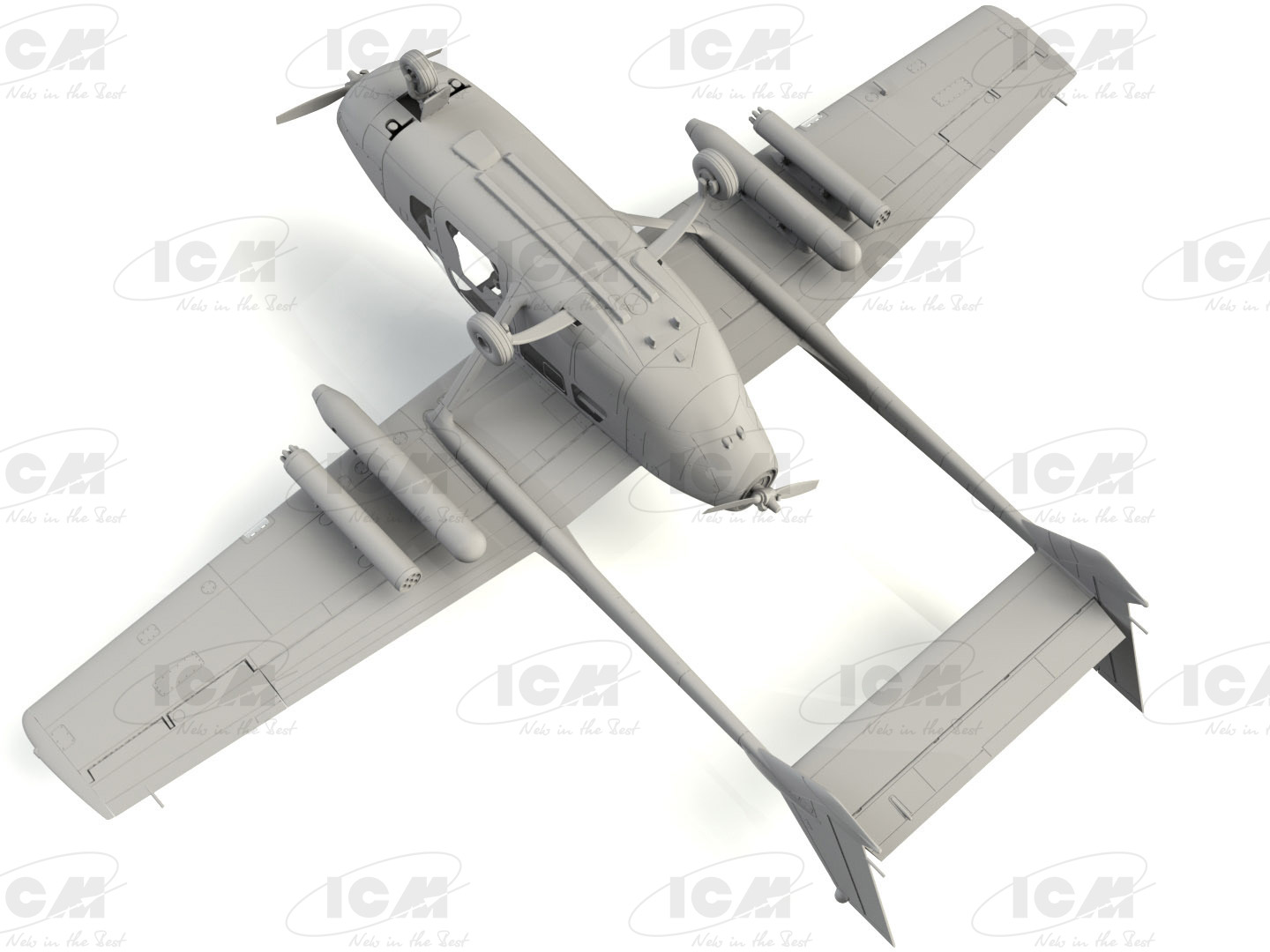 Как и гражданская версия, Skymaster представлял собой недорогой двухмоторный самолет с поршневым двигателем, с одним двигателем в носовой части самолета и вторым двигателем в задней части фюзеляжа.
