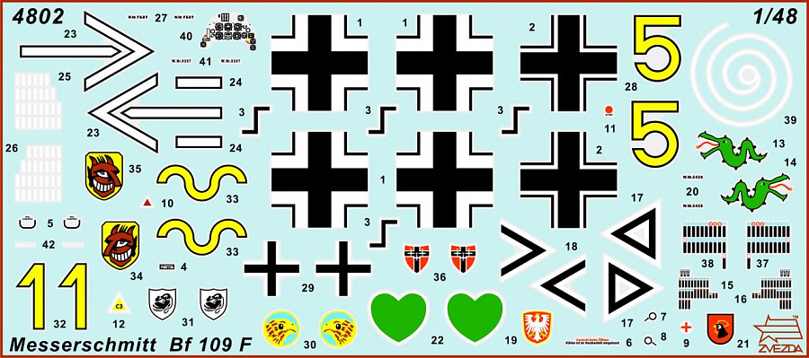 Историческая справка: BF 109 F2 поступил в люфтваффе в 1941 году. Его вооружение состояло из 15 мм скорострельной пушки MG 151 с темпом огня 950 выстрелов в минуту. Новинкой было –использование электропривода для ее перезарядки. Тропический вариант F-2 с дополнительными воздушными фильтрами выпускался для службы на фронтах, где пыль составляла большую проблему: североафриканском театре и южном участке восточного фронта. В середине Второй Мировой Войны на BF 109F летали 7 самых известных асов