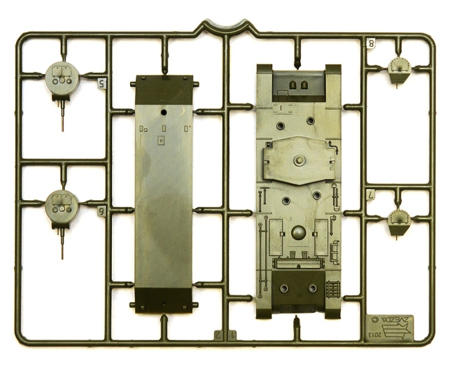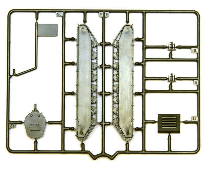 Набор деталей из пластмассы для сборки одной модели танка.